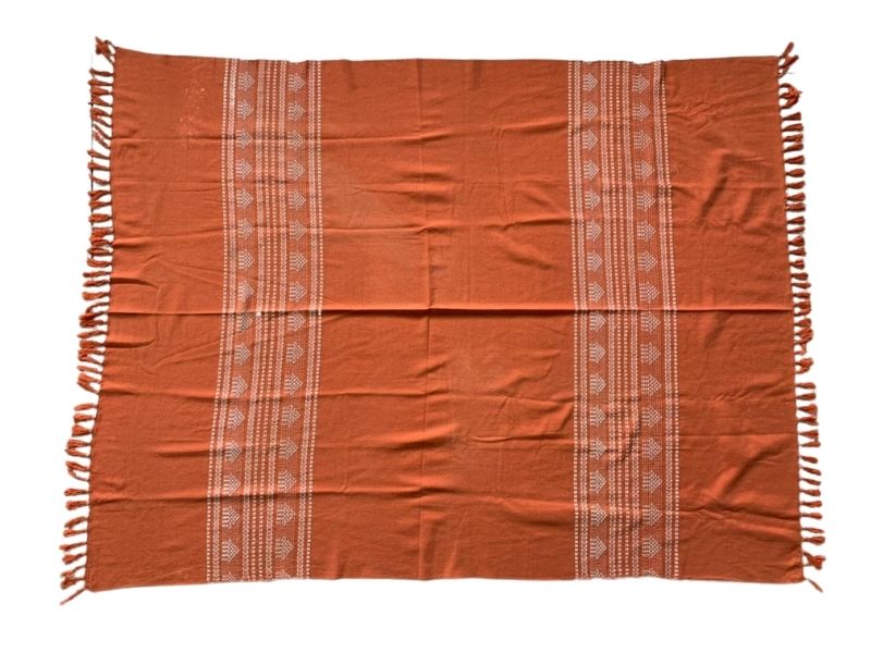 Manta Piquenique Laranja Detalhe Branco C/ Franja